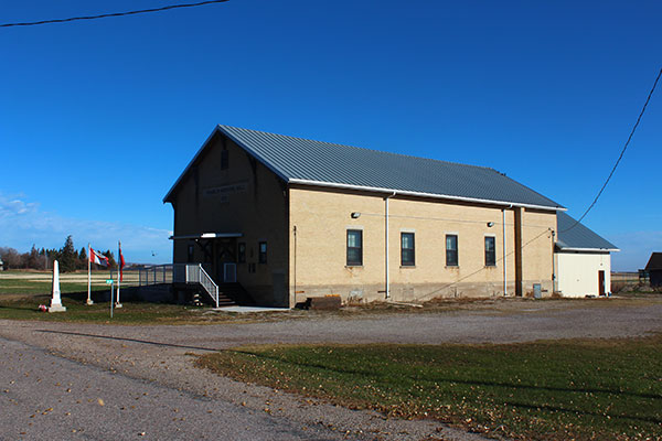 The hall has continued in use as a regional community centre. Restoration work in 1976 entailed renovating the stage, reinforcing the foundation, and filling its full basement with gravel. A new kitchen and washrooms were added to the east end in 1981. In front of the building is a small obelisk that commemorates five local men killed during military service in the First World War.