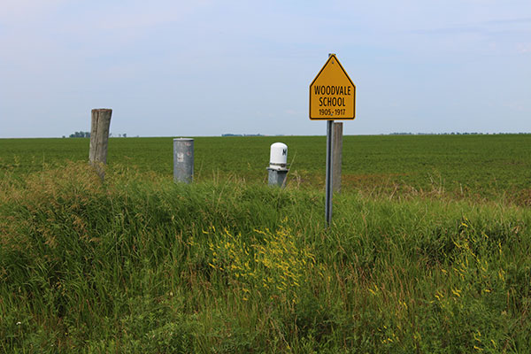 The Woodvale School District was established formally in August 1905. A one-room schoolhouse operated at 2-5-3W in the Rural Municipality of Roland. In 1919, it was consolidated with Myrtle Consolidated School No. 708. After the school closed, the building was moved to the village of Kane (SW6-5-2W) and renovated into a residence for the agent at the UGG grain elevator. It was dismantled in 1996. A metal sign commemorates it at the original site.