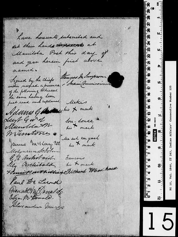 Signatory Page, Treaty (No. 2) made at Manitoba Post - Western Treaty No. 2, Library and Archives Canada