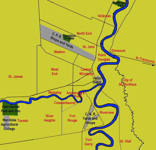 In the period from 1910 to 1920, Winnipeg was a city composed of many diverse neighbourhoods where people were united by common occupational and ethnic bonds. Click on a neighbourhood to visit: