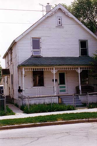 This large 2½-storey brick house had an enclosed verandah in this 2004 photo. For many years, this was the home of the Dutka family which operated small grocery stores at 138 Lorne and later 243 Austin.