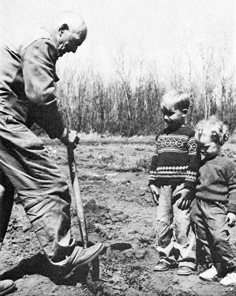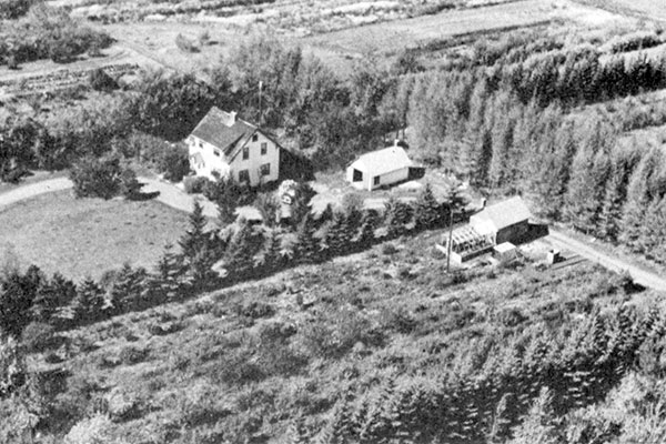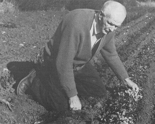 During his first year farming, however, Frank contracted pneumonia and lost the lower lobe of his right lung. He was advised to avoid strenuous activity, so he focused his attention on gardening. The hours he spent on horseback tending his cattle proved invaluable to this hobby, for he used the time to study the natural vegetation of the Dropmore area.