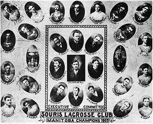 In the next season, that of 1904. Souris won the senior championship. [35] There was only one senior division that year, and one of the clubs, the Winnipeg Mintos, was clearly the worst of the four teams. Souris beat them 10-2 and 11-1, the latter game especially being “too one-sided to be interesting,” since “before the impetuous rushes of the boys from old Plum Creek the Mintos went down like wheat before the reaper. [36] Games against the other two teams, the Winnipeg Lacrosse Club and the Winnipeg Shamrocks, were much more satisfactory. There was, for example, the game played in Souris on July 23 in which the home club beat the Winnipegs 8-2, one of the “fastest and most brilliant games every played here” despite the score, and in which every Souris man “did his duty.” [37] There was especially the game in Souris on August 19, with the Shamrocks as the opposition and the champion-ship at stake, a great game that ended in a 2-2 tie and with Souris on top of the league. Admittedly, the latter match had been harmed somewhat by “considerable roughness on both sides,” but this had not been the Souris players’ fault; it had been instigated by the Shamrocks, and allowed to get out of hand by a referee who was not “up to his job” and seemed incapable of seeing ... serious ... offences ... unless a player was stretched on the sward.” [38] Now, for the first time since 1887, there was no doubt that Souris had the provincial championship team. They did so again in 1905. It may be, in fact, that no team in any manly sport has ever fostered so much legitimate community pride as did the Souris Lacrosse Club in this latter year.