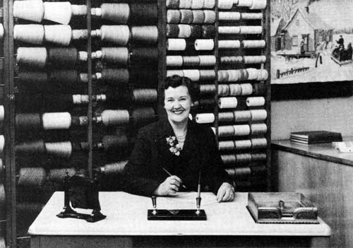 The Searle Farm Home Weaving Service, which had been operated at the same time that the Company had developed the education program, was able to continue in the head office in the Grain Exchange Building, Winnipeg. This acted as a retail outlet for the equipment and materials necessary to practice hand weaving. It also had a staff consultant, Dorothy Rankine, who operated the Winnipeg Office, and gave advice and assistance to weavers.