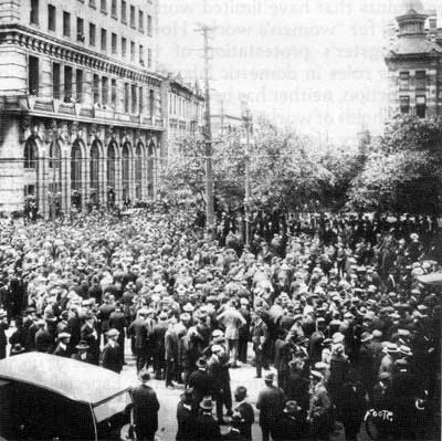 Winnipeg Strike crowd at the corner of William Avenue and Main Street, June 21, 1919.