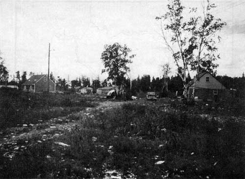 The Letter of Intent notwithstanding, the Manitoba government proved reluctant or incapable, or both, of maintaining the people in their new site. Designed according to a southern urban model, the community was characterized by new houses lining named gravel streets. The hub of the new community, located more or less at its physical centre, consisted of a new school, recreation hall, council office, co-op store and nursing station. The new community certainly looked modern, prompting Manitoba Hydro to actually describe it as similar to “a lakeside summer resort.” [9] The Manitoba government implicitly believed that infrastructural modernization was tantamount to “development.”