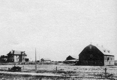 “On the farm of Mr. N. Fehr, Gladstone District. Mr. Fehr is an American settler who has been 13 years in Manitoba. His first home was a small log house, now he has this fine up to date building, good stables and numerous horses and cattle. He is a good farmer but perhaps his specialty is raising hogs.” 1916.
