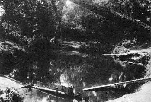“Country life is both pleasant and attractive where places of sport and amusement are provided. Here is a bathing spot with spring boards from which to dive and steps down into the water.” Carman, 1916.