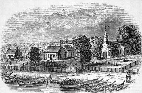 “Indian Settlement at Red River,” from G. J. Mountain’s Journal of the Bishop of Montreal During a Visit to the Church Missionary Society’s North-West American Mission, 1846.