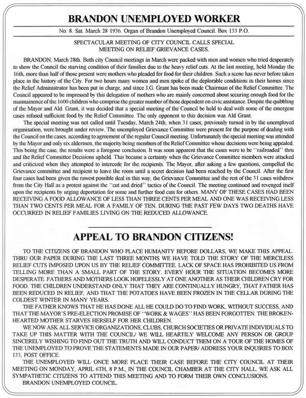 2. Brandon Unemployed Worker, 14 March, 1936.