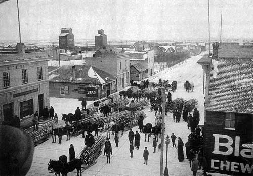 Patriotic sale of wood from Crooked Lake Indian Reserve residents, Broadview, Saskatchewan, 15 December 1917.