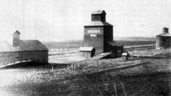 This photo, taken in 1911, shows the three types of grain storage facilities in Niverville: the warehouse, the square-design Ogilvie elevator, and the round design of the first elevator in Manitoba.