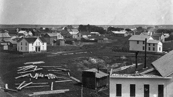 Before the boom. A view of Winnipeg in 1875, taken from the roof of the courthouse, looking toward the East Ward.
