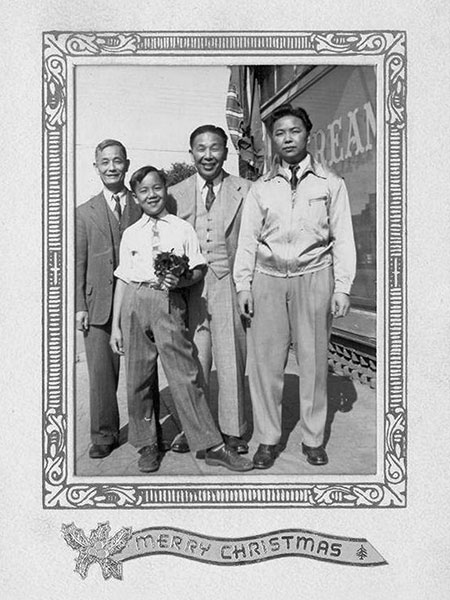 Restauranteur Lee Low and family at Carberry, 1949. L-R: Tong, York, Lee and Walter.