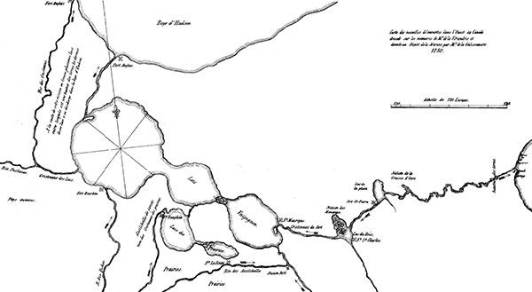 Map of western Canada based on La Verendrye’s travels. “Carte des nouvelles découvertes dans l’Ouest du Canada, dressée sur les memoires de Mr. de la Vérandrie et donnée au depot de la Marine par Mr. de la Galissoniére, 1750.”