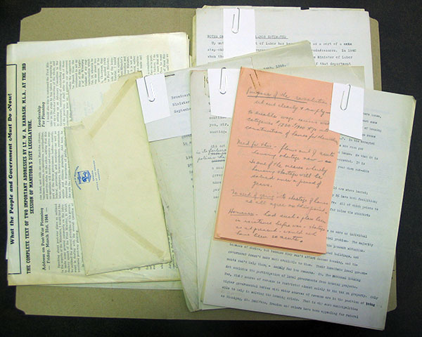 Like most of the material contained in this collection, Kardash’s MLA records capture his views, opinions and beliefs on the political and social issues that were facing the people of Manitoba through much of the twentieth century. One of the interesting events documented in the records is the 1956 trip of the Province’s MLAs to Northern Manitoba [AM, P7149/5]. This file includes background information, itineraries and correspondence which document the controversy surrounding Kardash’s potential visit to radar and military installations. Through the records researchers can explore whether he was banned from certain sites or whether he chose not to go.