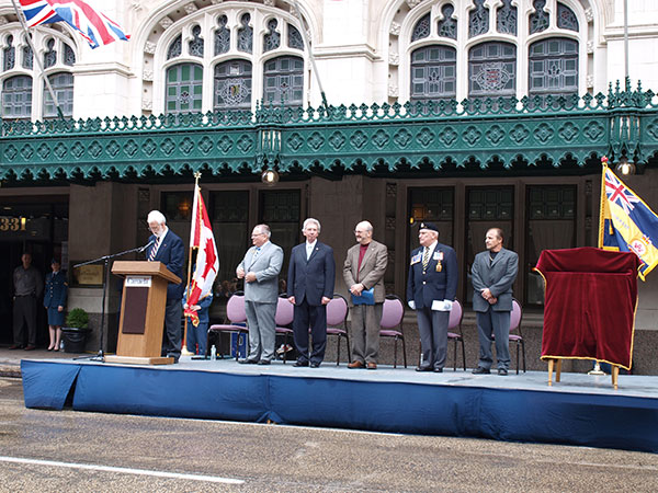 On 12 June 2010 the Historic Sites and Monuments Board of Canada hosted a ceremony to commemorate the founding of The Royal Canadian Legion in November 1925. The event was held in conjunction with The Royal Canadian Legion’s 43rd Dominion Convention on Smith Street, Winnipeg, directly in front of the Marlborough Hotel, the site of the organization’s founding as well as its first Dominion Convention. Since its establishment seven years after the end of the First World War, The Royal Canadian Legion has remained Canada’s largest veteran-based social and advocacy organization.