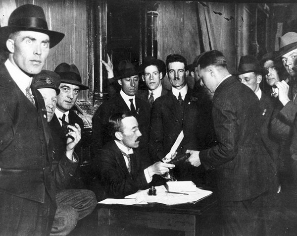 Veterans unite. On 4 June 1919, members of the Great War Veterans Association demonstrated outside Winnipeg City Hall.