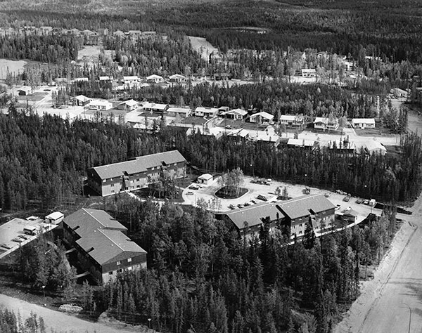 Boreal forest surrounded the growing town of Leaf Rapids in this aerial view from 1974.