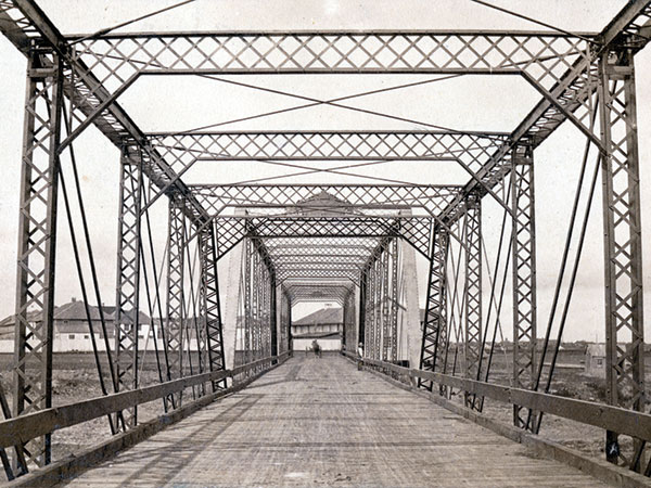 The Main Street Bridge, built by the HBC in 1881, crossed the Assiniboine River south of Upper Fort Garry.