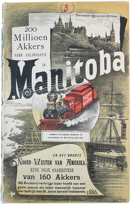 5. Canadian Pacific Railway Company. Manitoba en het Noord westelijk gebied (Noord Amerika): verslag omtrent het klimaat, den bodem, de producten en bronnen van inkomst voor kapitalisten, landbouwers, ambachtslieden, arbeiders, dienstboden, enz. : met bizondere betrekking op Hollandsche en vlaamsche kolonisten. Turner & Dunnett, 1886. p. 11