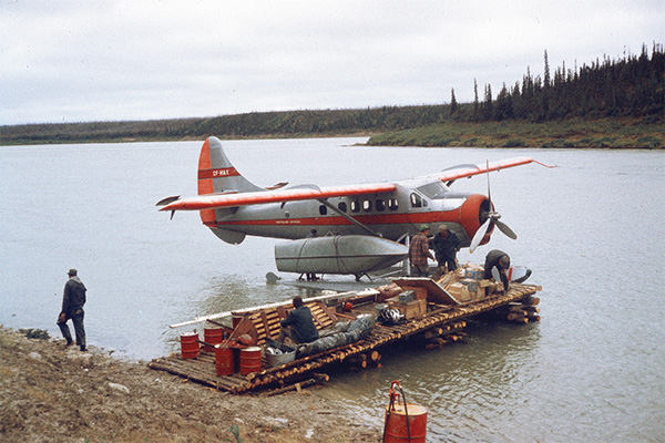 float, also the fuel drum on shore. Very experienced pilots were essential in these conditions. Three separate flights were needed for this large quantity of materials as we moved to the lower Nelson River.