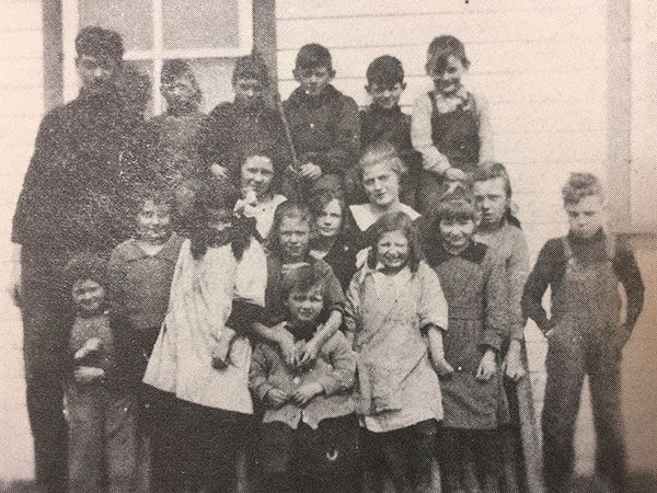 Fifteen-year-old Erwin Johnson towered over other students at Bardal School in this photo from 1921.