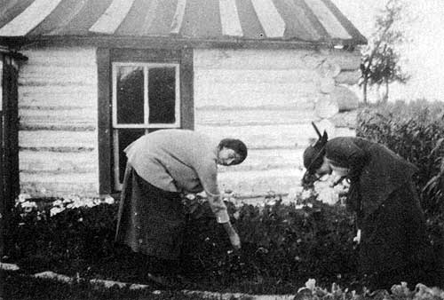 We went to a log building where there was a memorial service for an Indian child who had died the previous day. There was a stove, table, bed and small organ. The room was crowded with relatives and friends seated on the floor. As we prepared to do the same, two low seats were pushed toward us. Mr. Kells, a missionary from Toronto, conducted the service in Cree. Francis Nickawa, a young Indian woman, sang a hymn in Cree. I played the accompaniment even though the organ did creak and groan a little. Robert, one of the lay missionaries, gave a prayer in Cree with such reverence and earnest emotion that I was deeply moved.