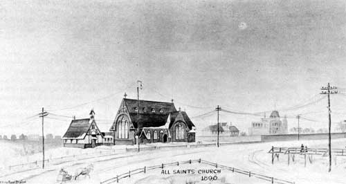 All Saints Church, Winnipeg. Watercolour by F. Fitzroy Dixon, 1890.