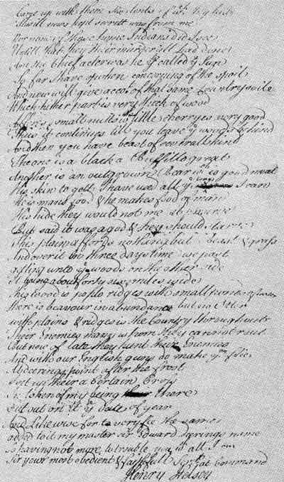 The reason for this curious state of affairs is to be found in the circumstances of Kelsey’s 1690 trip inland from York Factory. Sent to “the Inland Country of Good Report” to seek out a certain tribe of Indians and persuade them to come and trade at the Bay, Kelsey found himself without writing materials. He was forced to commit to memory the important details of his trip inland, using a form of doggerel verse to assist himself. When the Indians went down to trade in 1691 Kelsey remained inland but sent a request for a notebook and writing materials. These were sent to him by the Company officials, and on 15 July, 1691, after writing down his doggerel summary of 1690, Kelsey recorded his departure from Deering’s Point. He said nothing about its location, however, and nothing in his record of the first day’s travel gives any indication of where Deering’s Point was. He wrote only that they “paddled about 18 miles and came too.”