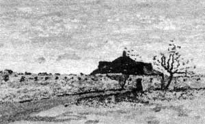 Wool rug / wallhanging from the Women’s Institute loan collection of handicrafts at the Dugald Costume Museum. This design was copied from a painting by W. R. Phillips entitled “Old Fort Garry.”