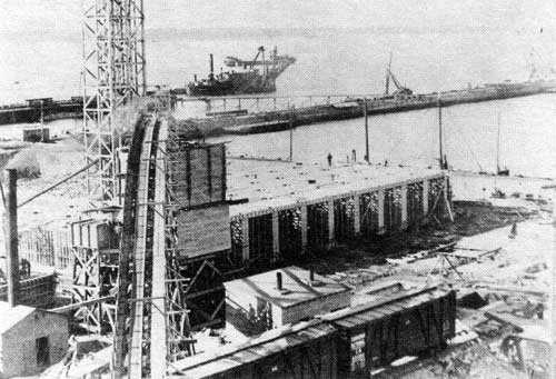 By this time, progress along the Hudson Bay Railway had proceeded as far as Kettle Rapids, when the change in direction of the railway was made from Port Nelson, as is obvious from a glance at any map of that area. In great consternation, new plans were made to build the port at Churchill. The construction of the grain elevator began on the east side of the river, which, of course, was dictated by the fact that the railway was located on that side.
