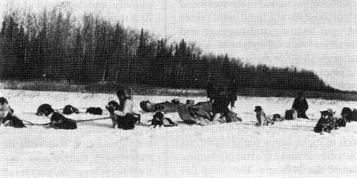 When the camp for the night is known a great run is made for the last 20 minutes or so and the dogs go on up the bank to the timber without urging, until stopped by upsetting.