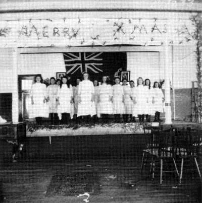 Manitoba school concert, circa 1915. “The centrality of citizenship education in the emerging public schools was evident in the ‘ever-present British flag, homilies to the Queen, non-American textbooks, and the promotion of Loyalist mythology.’”