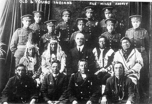 Elders and young soldiers from the File Hills Colony in Saskatchewan, no date.
