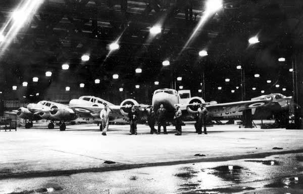 Cessna Cranes stored inside Hangar #1, Brandon, 1942.