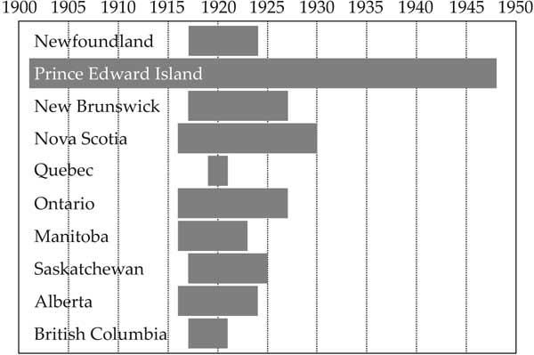 PEI: home of Canadian sobriety. This chart shows the dates when Prohibition began and ended in each province.