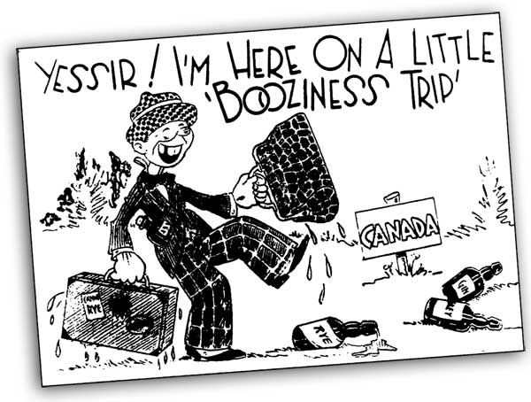 Prohibition-era postcards, like this one, suggest that Americans were, for once, appreciative of their northern neighbours. Another had the caption “Hic! Hic! Hooray for Canada!”