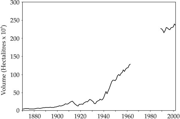 Sources: Brewers Association of Canada, 1965, Brewing in Canada, Montreal: Ronalds-Federated Ltd.; Brewers Association of Canada, various years, Annual Statistical Bulletin.