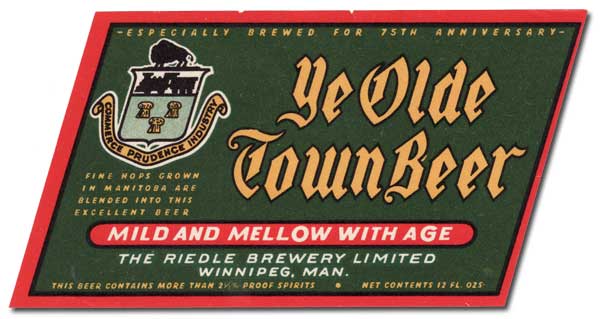 “Mild and mellow with age.” This beer was specially brewed in commemoration of Winnipeg’s 75th anniversary year in 1949. Its maker, Riedle Brewery, was the renamed Edelweiss Brewery, ransacked in 1919 by returned veterans of the First World War.