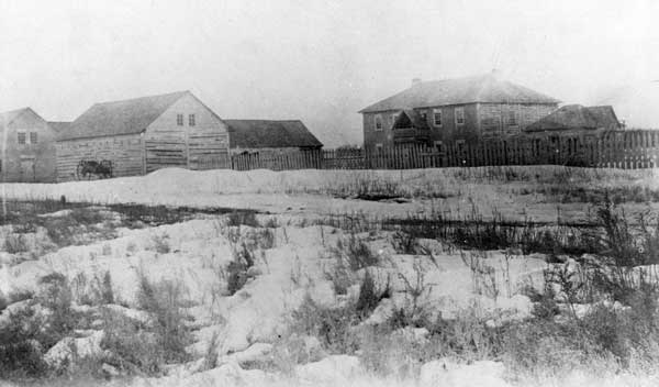 View of Fort Ellice from the north, 1890. The large building on the right side, with a covered balcony on the second floor over the entrance, is the Chief Factor’s residence.