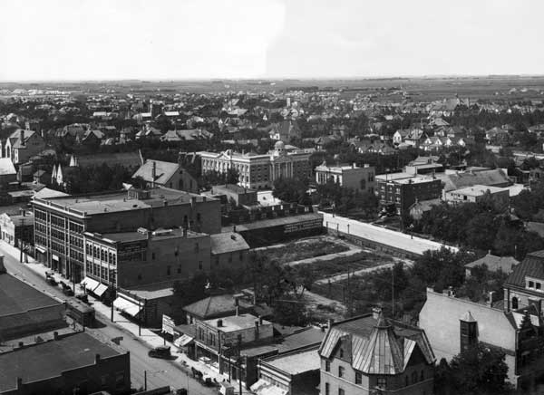 A vast prairie lay just beyond Brandon’s city limits in this panoramic scene of Manitoba’s “Wheat City”, on the eve of World War I.