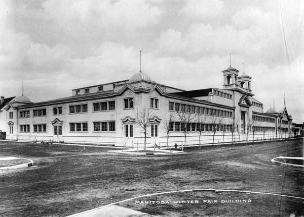 The Brandon Winter Fair building, shown here circa 1912, housed the city’s Alien Internment Centre from November 1914 to July 1916.