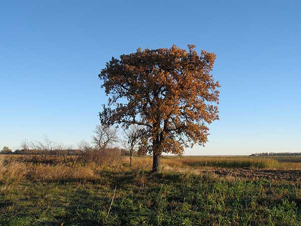 The sandy ridges on the landscape south of Delta Marsh provide ideal growing conditions for bur oak, Manitoba’s only native oak tree. While thousands of these bur oaks grow throughout the area, a lone oak, visible for miles, is unique. The “Murder Oak,” as it has come to be known, grows near a dirt road some three miles west of a modest farm that was very typical of those on the Portage Plains in the 1940s.