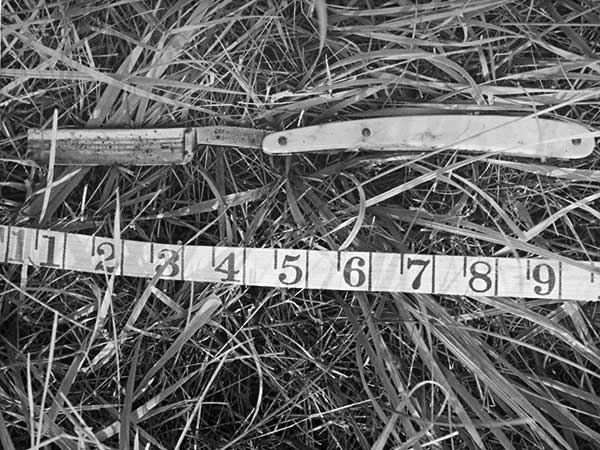Investigators at the scene soon found inconsistencies in Baldy’s story. The path taken by his car could be traced easily by following the imprint made by the car’s tires in the soft mud. A hammer and some broken glass were found in a nearby pasture, blood stains were found on a gatepost, and a straight razor was discovered in the grass. When the car was removed from the ditch, its windshield was found to be broken in two places, with most of the glass inside the vehicle. There was no blood on the windshield or on the dash – most was on the floor on the driver’s side. Baldy did not have any injuries to his head that would suggest he had gone through a windshield. There were only two clean cuts – one to his neck and another to his wrist.