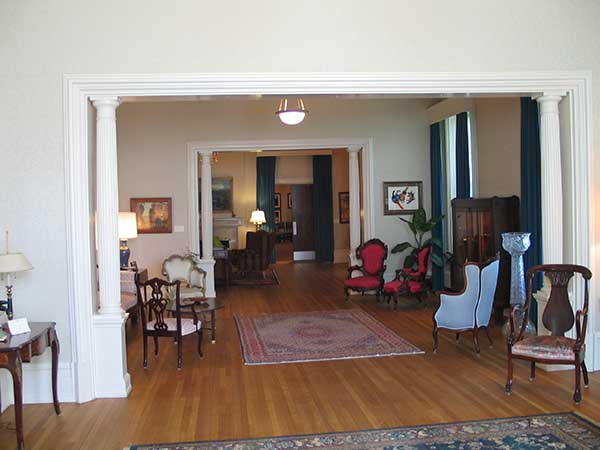 Furnishings in the front drawing room of Government House have changed to suit the tastes of the times, as seen in this pair of photos spanning 104 years. Heavy curtains in the archways of the 1904 photo (top) have, by 2008 (bottom), been replaced by classic columns, perhaps to provide structural support to the 125-year-old building.