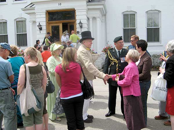 The Honourable John Harvard, P.C., O.M., Manitoba’s 23rd Lieutenant-Governor and Patron of the Manitoba Historical Society, welcomed visitors into his home during Winnipeg Doors Open in May 2008. His Honour and Her Honour Lenore Berscheid are pictured here dressed in period costume (he in top-hat, she in bonnet), as some 2,000 visitors took in the building and grounds during the two-day free event.