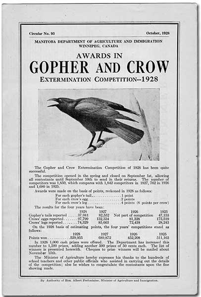 10. “Awards in Gopher and Crow Extermination Competition, 1929.” Manitoba Department of Agriculture and Immigration, Circular No. 95, October 1929. [Manitoba Legislative Library]