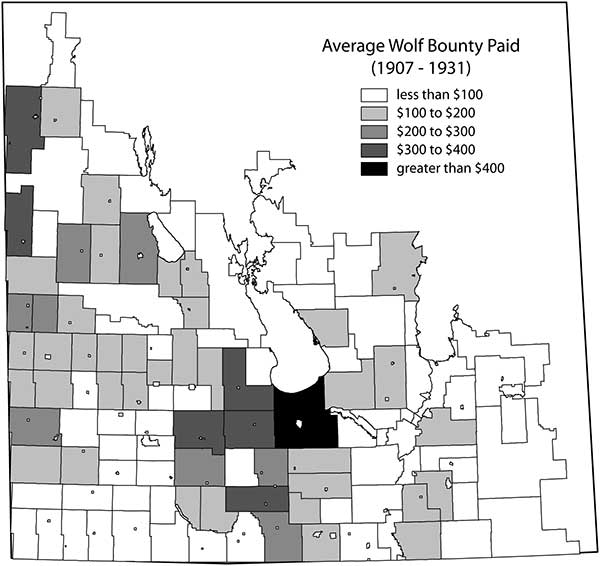Portage wolf sanctuary. A municipal map of annual wolf bounties paid between 1907 and 1931 shows—surprisingly—that the highest bounties were paid by the RM of Portage la Prairie and adjoining municipalities of south-central Manitoba.