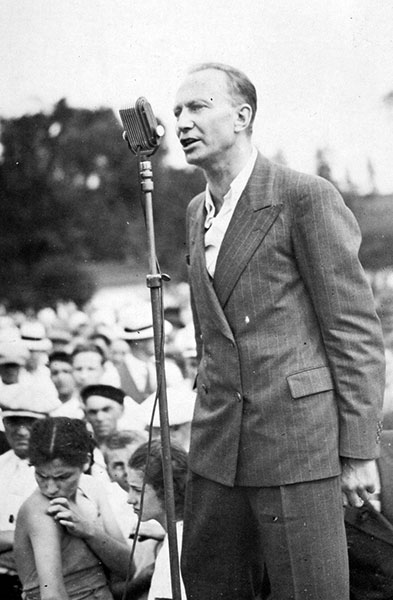 Communist candidate Tim Buck addresses the crowd at a Dominion Day rally in Winnipeg, 1935.